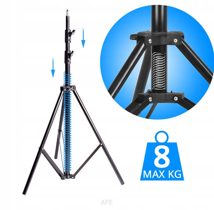 ◇ Одним із ключових елементів конструкції штатива A705 є амортизаційні пружини, які забезпечують додатковий захист обладнання під час регулювання висоти . Пружинне поглинання ударів зводить до мінімуму ризик пошкодження обладнання шляхом пом'якшення рухів, що особливо важливо при роботі з делікатним і дорогим освітлювальним обладнанням.
