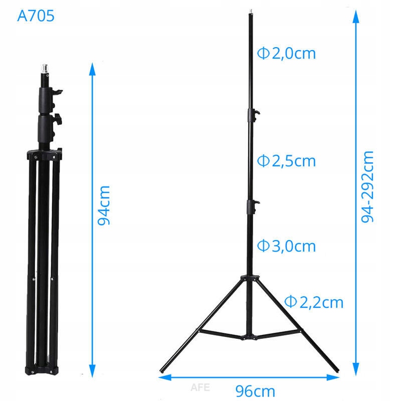 ◇ Підставка для освітлення A705 — це універсальний і міцний інструмент, який точно задовольнить вимоги як професійних фотографів, так і фотографів-аматорів. Його максимальна висота становить 292 см см дозволяє підключати різні джерела світла, такі як системні лампи, галогенні лампи або студійні лампи, що робить його ідеальним вибором для багатьох програми.