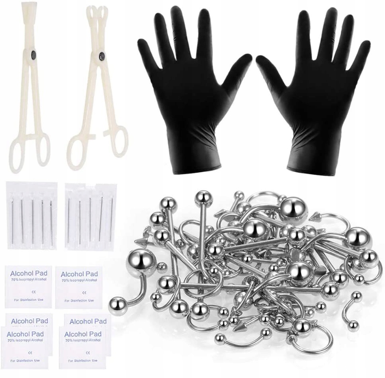 Включає голки для проколів 16G/14G, аксесуари для проколів (кільця для пупка, вушні сітки, цвяхи для брів тощо), рукавички та допоміжні інструменти, від вух і носа до рота та пупка, одягайте, де завгодно, набір для персоналізованої перфорації весь корпус