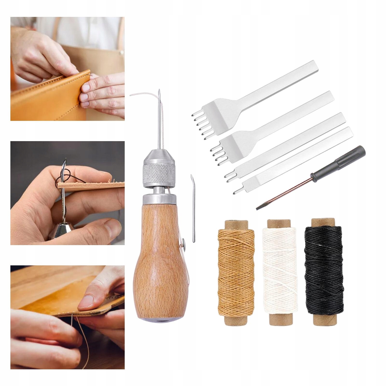 Шило для шиття: ви отримаєте 1 шт. шкіряного шила для шиття, 2 шт., 3 шт. котушок, 1 шт. викрутки, 1 шт. котушки для ниток, 4 шт. шкіряних дироколів, які стануть вашими практичними інструментами для шиття та зручні у використанні.