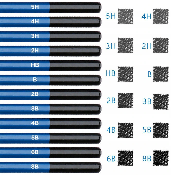 ✔️ У наборі 12 видів олівців. Їхню твердість можна розпізнати за символами 2H / 3H / 4H / 5H / HB / B / 2B / 3B / 4B / 5B / 6B / 8B.