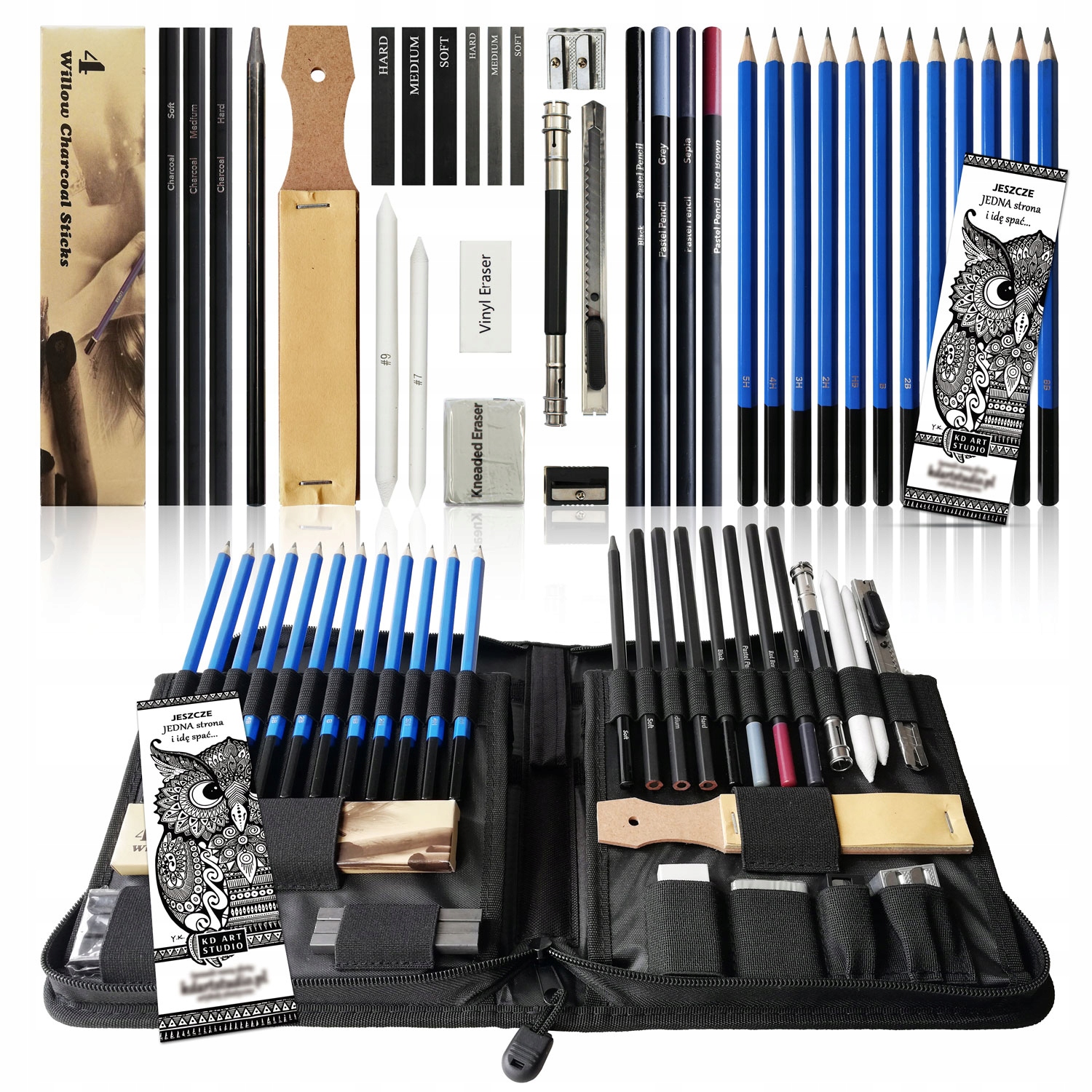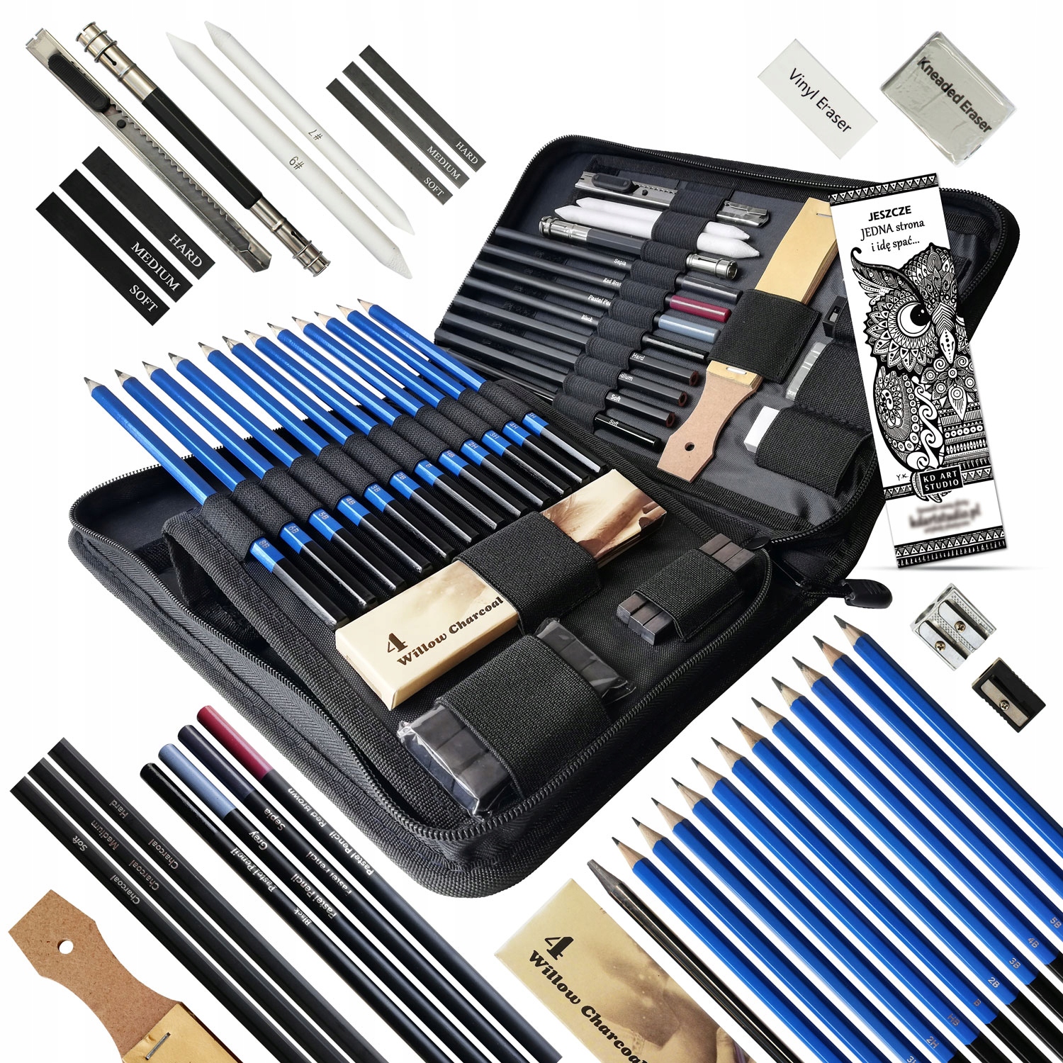 ПРОФЕСІЙНИЙ НАБІР ДЛЯ СКРИТКУ ТА МАЛЮВАННЯ 40в1 ВУГІЛЬНІ ОЛІВЦІ В ФУТОЛІ