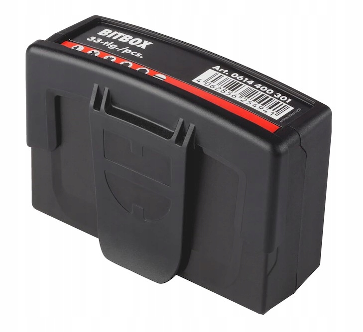 33 шт. Широкий асортимент насадок у ударостійкій пластиковій коробці зі знімною кліпсою для пояса