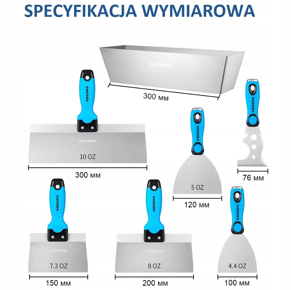 Професійний нержавіючий шпаклівник, встановлений для пальто та пластів+Кувета Кезерс
