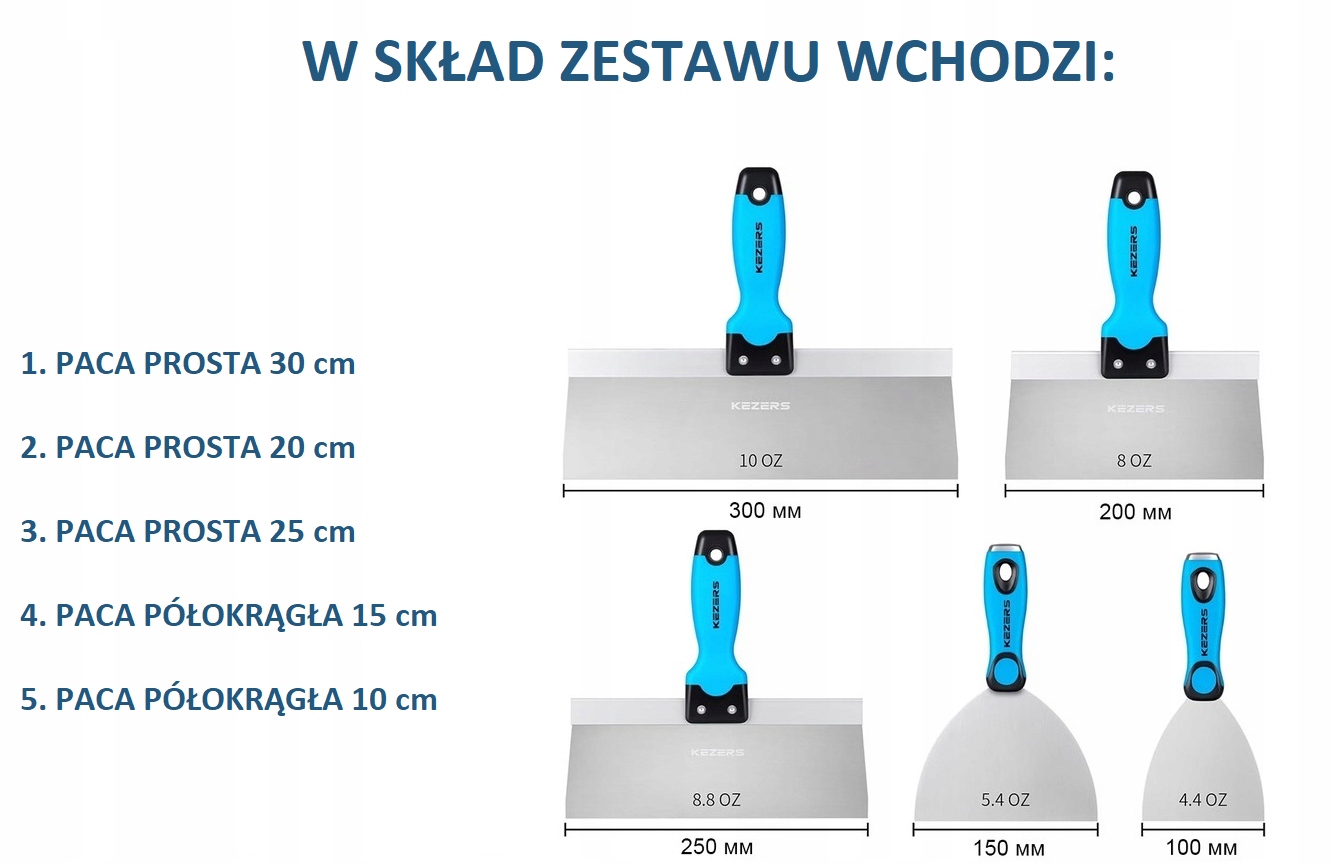 Професійний набір нержавіючої шпаклівки для пальто та пластирів Kezers 5 El
