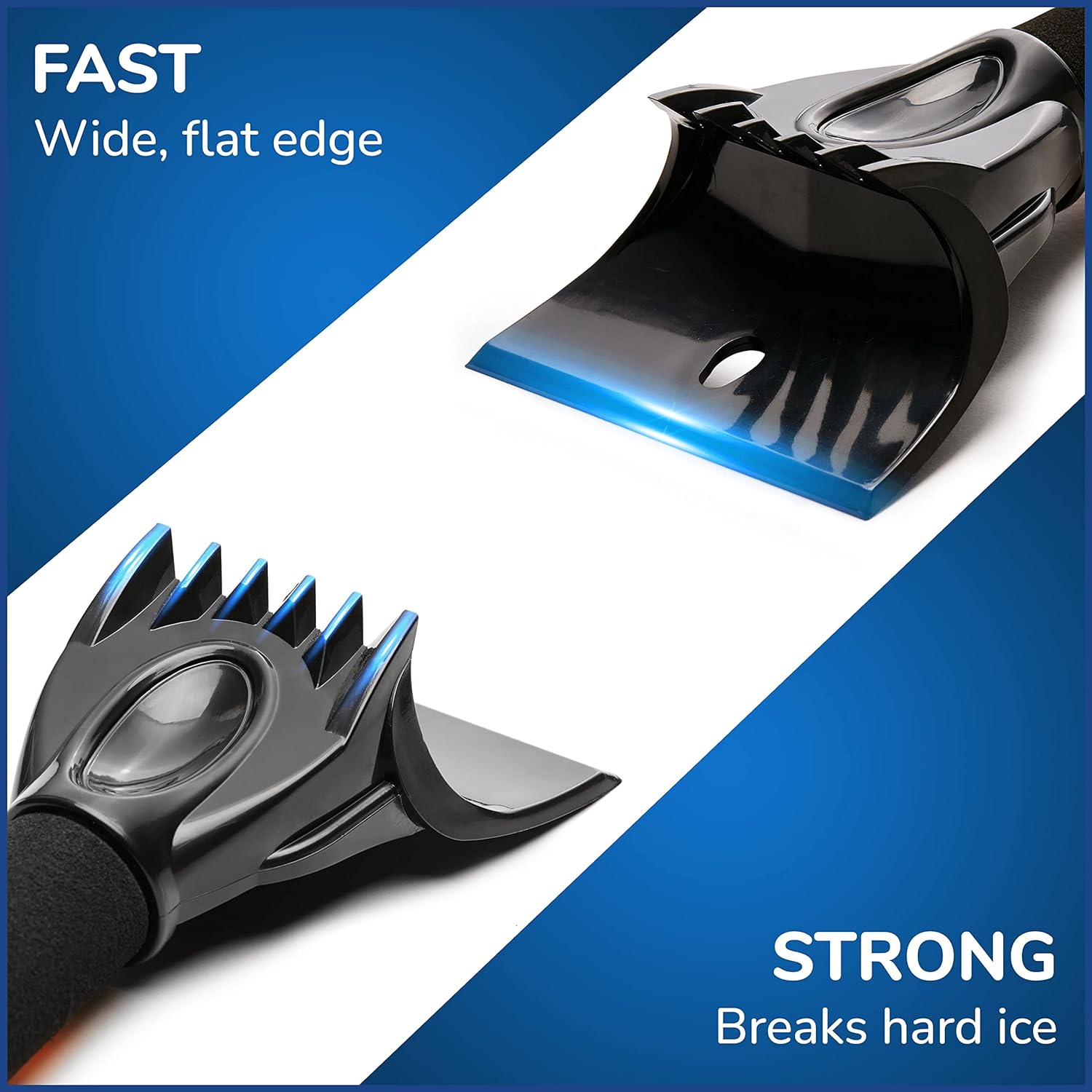 Економте час і пограйте безпечно, завдяки вигнутим лезу, лід тікає з передньої сторони лобового скла та тіла. Немає подвійної роботи та морозива, що летить в обличчя через класичний скребок автомобілів!