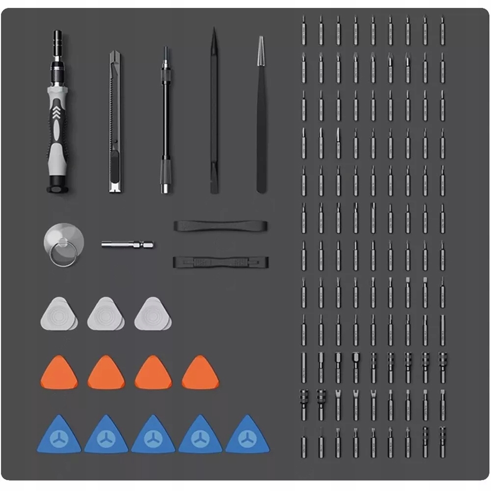 【Ідентифікація кольорового коду】Цей невеликий ремонтний набір із інструментами для обслуговування використовує модулі яскравих кольорів для розрізнення різних типів насадок, що дозволяє швидко знайти потрібну насадку. Моделі біт включають: Phillips, Flat, Allen, Socket, Torx, Drill тощо, 14 типів. Незалежно від того, який тип гвинта ви зустрінете під час ремонту, у цьому наборі прецизійних магнітних викруток є все, що вам потрібно. Наприклад, мобільні телефони, комп’ютери, ігрові консолі, предмети домашнього вжитку, окуляри, годинники та електронні вироби.
