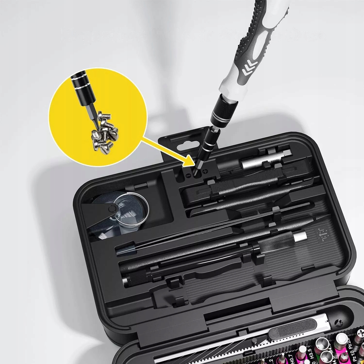【Вбудований контейнер для зберігання з магнітизатором】Міні-набір точних викруток із магнітизатором. Магнітизатор ідеально вбудований в контейнер і легко загубиться. Крім того, наконечники викруток магнітні, що важливо при роботі з маленькими шурупами. Це гарантує надійне утримання гвинтів і запобігає їх випаданню або втраті, особливо у вузьких місцях. Ця функція позбавить вас від багатьох розчарувань.