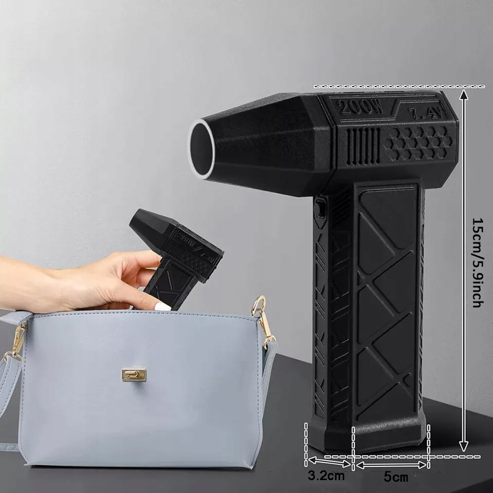 ✨ ЗРУЧНИЙ ДИЗАЙН: просто натисніть перемикач, щоб почати потік повітря, і відпустіть його, щоб зупинити його. Безщітковий двигун портативного турбовентилятора забезпечує високу швидкість обертання до 130 000 обертів за хвилину, доповнену вбудованим регулятором струму 30 А, який забезпечує плавне та плавне регулювання швидкості. Потік повітря можна регулювати відповідно до ваших уподобань. Корпус виготовлено зі суміші вуглецевого волокна PETG, щоб забезпечити довговічність і зберегти елегантний зовнішній вигляд.