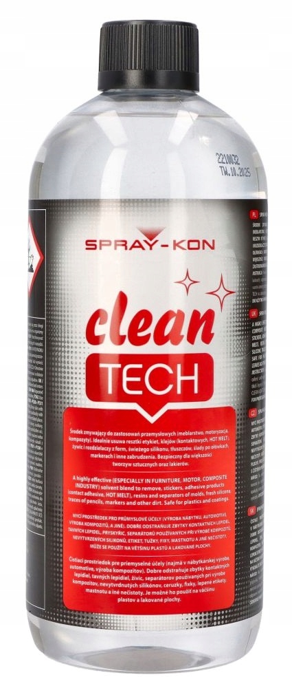 Spray-Kon CLEAN TECH — це професійний очисний засіб для промислового застосування, наприклад, меблів, автомобілів, композитів.
