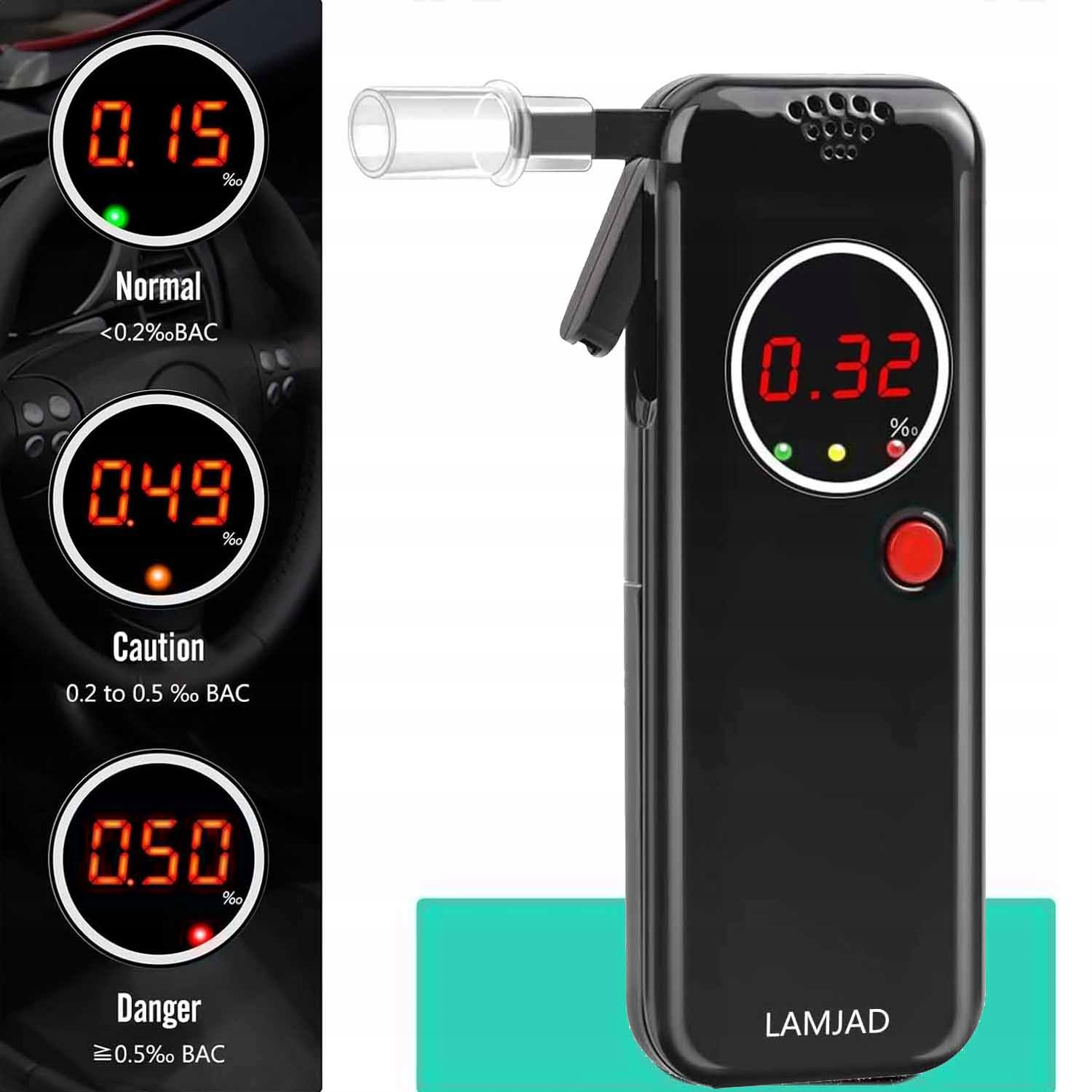 - ✅Високотехнологічний, точний цифровий РК-дисплей:Розроблений чутливий напівпровідниковий датчик точно показує вміст алкоголю у вашій крові за секунди. Червоне підсвічування полегшує читання навіть вночі. Алкотестер забезпечує дуже точний результат тесту та надійно витримує високі значення BAC.