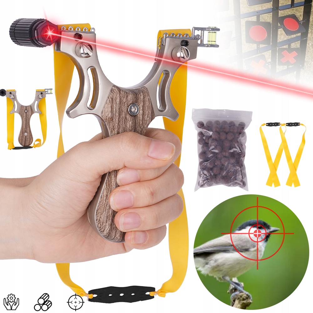 ⏩⏩ з лазером: Цей катапультний нахил оснащений невеликим червоним лазером, який може бути освітлений, повернувши перемикач, що полегшує користувачам орієнтуватися на ціль і зйомку, а також оснащений рівнем, який допомагає початківцям знайти найкращу позицію для зйомки.