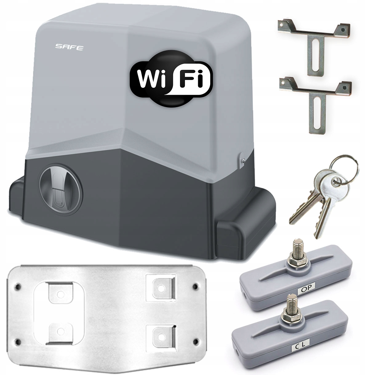 - У комплект Safe входить модуль Wi-Fi для роботи зі смартфоном, який дозволяє безкоштовно відкривати та перевіряти статус відкриття воріт.
