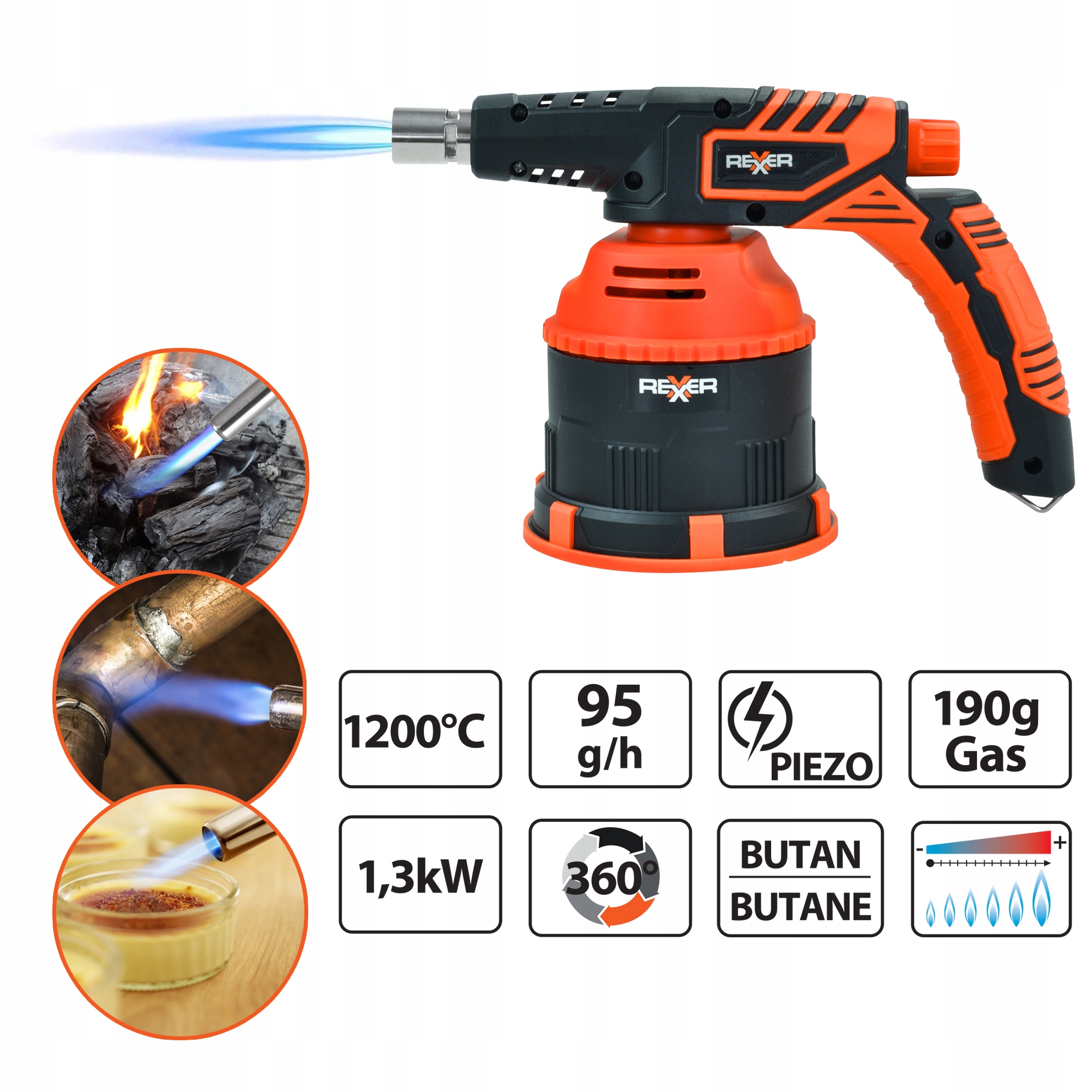 Газовий пальник – це інструмент для нагріву різних елементів. Складається з металевого корпусу з пальником і ручки, яка дозволяє тримати пристрій під час використання. Пальник працює на газі від прорізних картриджів, що робить його дуже практичним у використанні, особливо в місцях, де немає доступу до газової мережі. Пристрій простий у використанні, оскільки має п'єзоелектричний розпал, що означає, що для запуску не потрібні додаткові інструменти або джерела вогню. Завдяки потужності 1300 Вт газовий пальник здатний генерувати якісне полум'я, яке може досягати температури до 1200 градусів Цельсія. Це дуже корисно, коли мова йде про виконання точних робіт, таких як паяння або плавлення металів. Газовий пальник з п'єзоелектричним розпалом також оснащений регулюванням полум'я, що дозволяє регулювати потужність вогню під потреби користувача. Крім того, пристрій має систему безпеки, яка автоматично відключає подачу газу при згасанні полум'я, що підвищує безпеку роботи. Пальник оснащений ергономічною прогумованою ручкою, що значно підвищує комфорт роботи та підвищує стійкість до ударів.