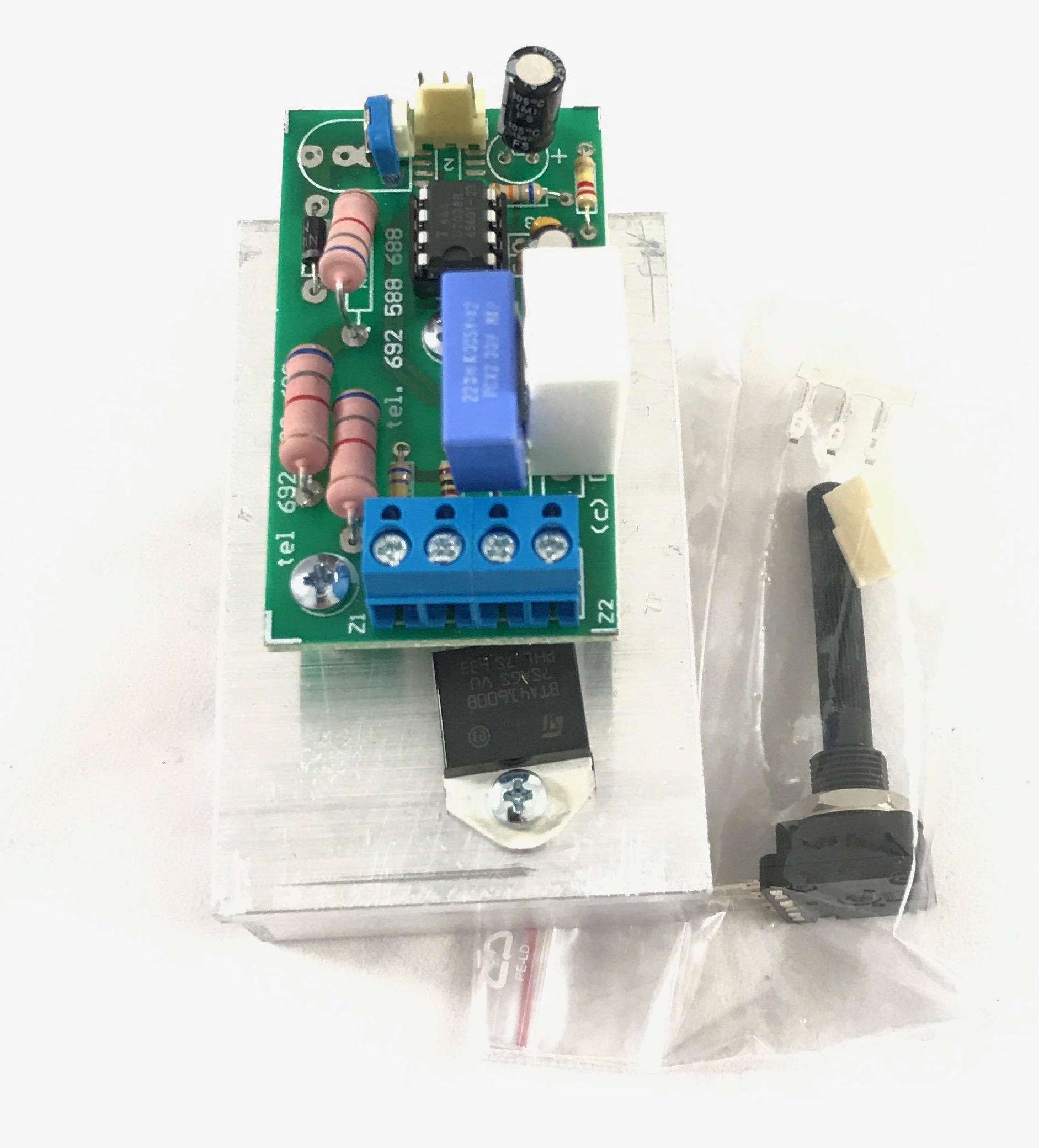 В набір входить потенціометр і роз'єм, необхідний для його підключення, інструкція і регулятор, який видно на фото.