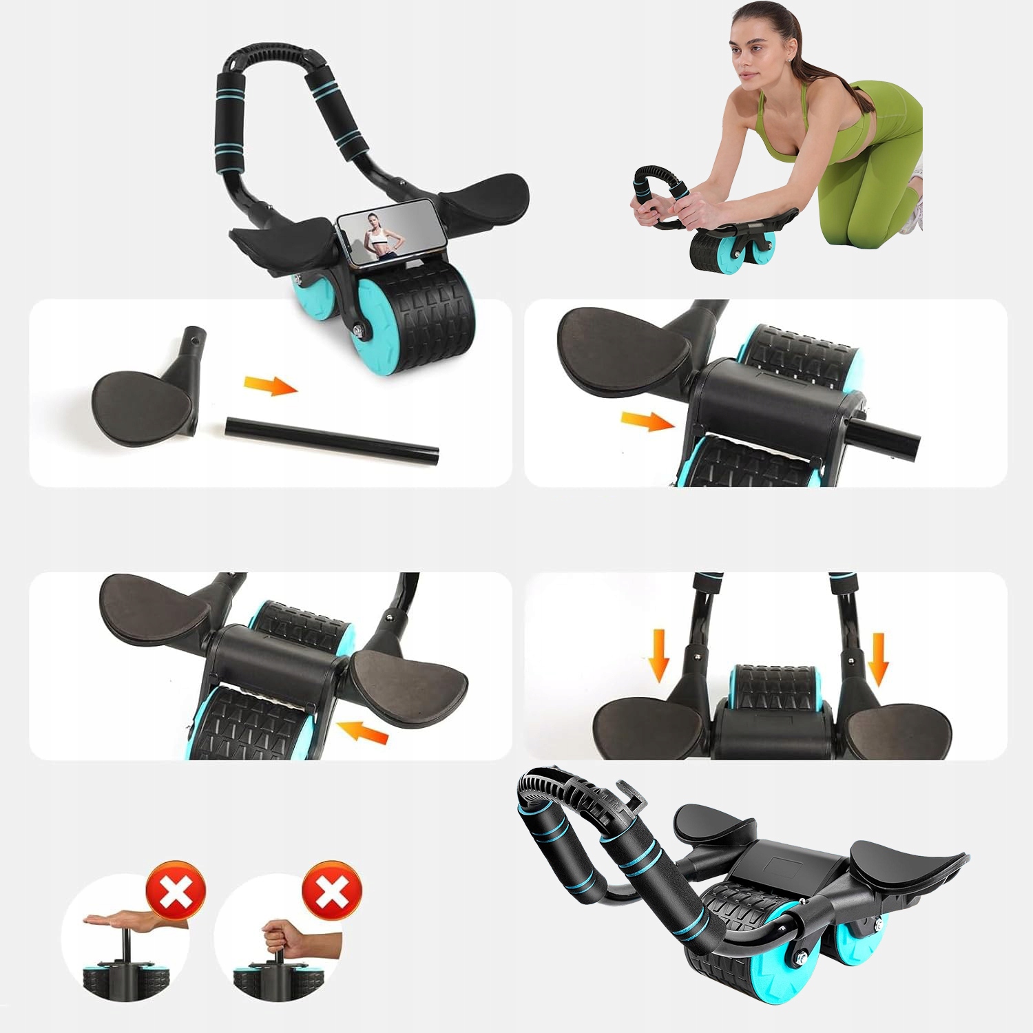 подвійні колеса забезпечують відмінну стабільність навіть під час інтенсивних вправ, що збільшує безпеку та контроль над рухом. Сумічне виконання міцних матеріалів гарантує тривалий термін використання.
