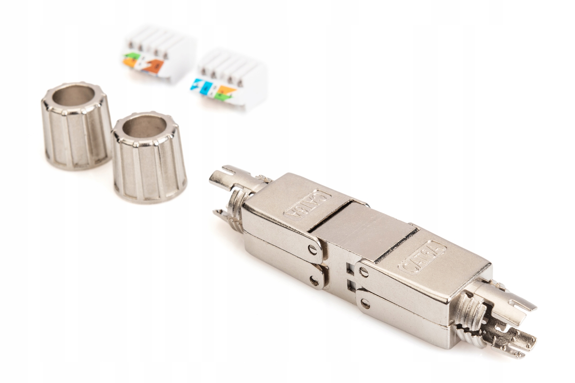 З'єднувач DIGITUS® Professional CAT для польових застосувань призначений для підключення або подовження кручених кабелів. Металевий корпус забезпечує довговічність і стабільність з'єднань. Цей роз'єм є відмінним вибором для швидкого монтажу або ремонту існуючих кабелів. Встановлення можливе без використання спеціальних інструментів і легко завдяки кольоровому ножовому зажиму LSA.