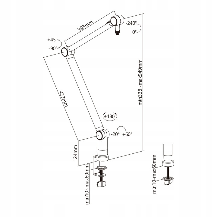 - Регульована висота від 338–949 мм