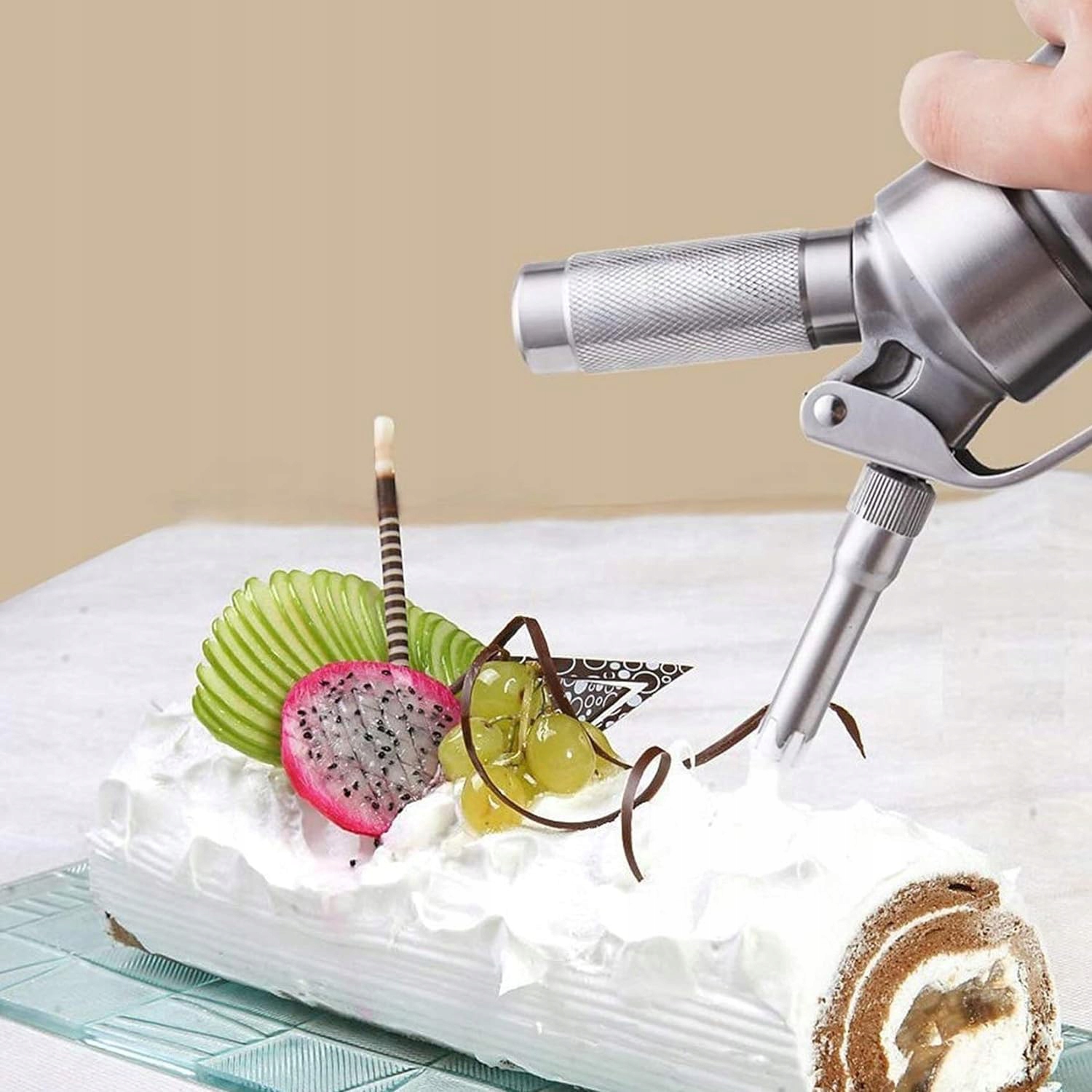 🔔🔔Смачно: Завдяки насадці для спінювання крему з нержавіючої сталі ви можете готувати крем і креми в мить ока або десерти. У той же час розпилювач збитих вершків зберігає крем свіжим у холодильнику до тижня.