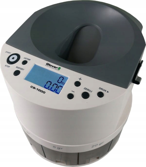 Сортувальник Glover CS-1000 є привабливою пропозицією в пропозиції пристроїв від відомого бренду Glover. Glover CS-1000 використовується для сортування та підрахунку монет (монет) 8 номіналів, без 1 гр. Використовуючи сортувальник Glover CS-1000, ми можемо покращити та прискорити незручний процес обробки монет. Після завершення процесу сортування лічильник видає нам загальну вартість конвертованих монет і кількість монет для кожного номіналу. Вона має міцну металеву конструкцію, а елементи (включаючи барабан), які контактують з монетою, виготовлені з міцного металу. Легкий доступ до барабана, знявши верхню частину корпусу за допомогою спеціального кнопки полегшує роботу лічильника. Змінне притискне кільце для транспортування монет і можливість регулювання тиску збільшують довговічність пристрою. Завдяки високій швидкості підрахунку Glover CS-1000 ідеально підходить для місць з низькою та середньою інтенсивністю обробки монет.