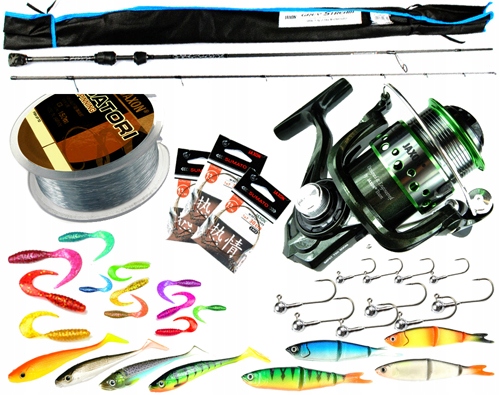Він складається з Спінінг GREY STREAM 2.4мз кастинговим вудилищем 4-17г, котушка MAGIC SPINна 9 підшипників, 150м волосіні SATORI SPINNING, 8 сталевих поводків JAXON і безліч приманок з посиленням! Все, що ви бачите на фото!