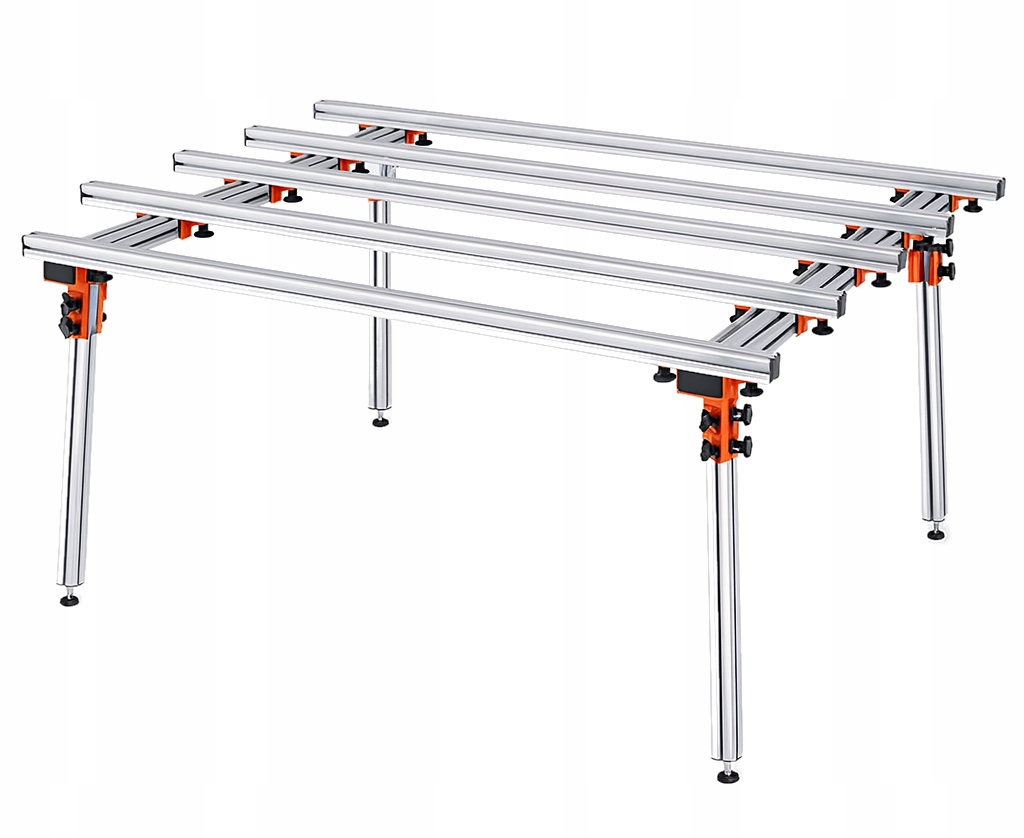 - Міцна конструкція: Стіл виготовлено з високоякісних алюмінієвих профілів 40x40 мм, що забезпечує ідеальний баланс між довговічністю та легкістю транспортування. Він не іржавіє та стійкий до будівельних умов.