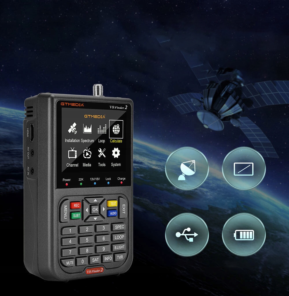 - Приймач сигналу DVB-S2X V8 Finder2 — це портативний локатор сигналу, сумісний ізDVB- S/S2/S2X і MPEG-2/4 H.264 (8-біт). Завдяки невеликому розміру, легкій вазі, інтуїтивно зрозумілому інтерфейсу користувача, довгому ресурсу батареї та багатим функціям, цей лічильник забезпечує все необхідне для встановлення та перевірки послуг цифрового телебачення в житловому чи багатоквартирному будинку. ul>