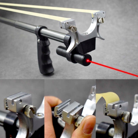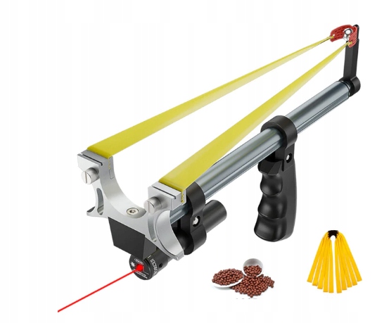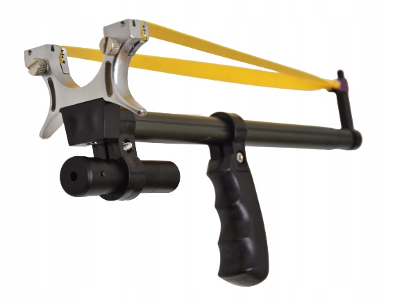 - Лазерний приціл у формі зеленого лазера, що кріпиться на передній частині рогатки, потужністю 500 мВт полегшить націлювання на вибрану ціль.