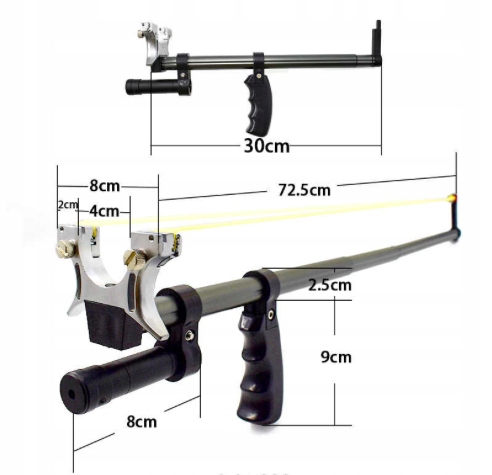 - Система гумових стрічок і висувний телескоп дозволяють ще сильніше натягнути і, як наслідок, більшу дальність стрільби з публіки або стріл!