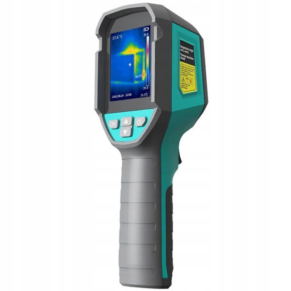 Тепловізор призначений для точного вимірювання температури в діапазоні від -20 ℃ до 400 ℃. Зона огляду охоплює 50 x 38°. Оснащений 2,4-дюймовим екраном із роздільною здатністю 320x240 пікселів, він забезпечує точне представлення зображень у шести різних колірних палітрах.