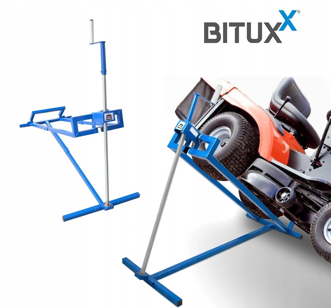 Підйомник професійний для підйому трактора - газонокосарки та квадроцикли для ремонту чи очищення після скошування, відкручування ножів для заміни чи заточування. Пристрій замінює канал і є обов'язковим для кожного власника косарки.