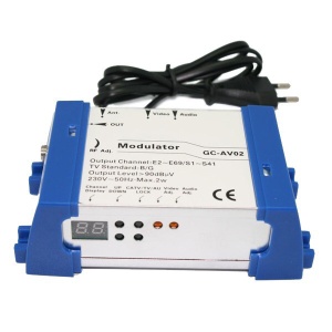 Професійний модулятор, що дозволяє перетворювати низькочастотні аудіо та відеосигнали (супутник, відеомагнітофон, консоль, DVD, DVB-T декодер, відеореєстратор) у високочастотний сигнал. Підключатися до модулятора можна як через фоно, так і через євророз'єми. Ви можете вибрати будь-який канал з діапазону 1 - 69.