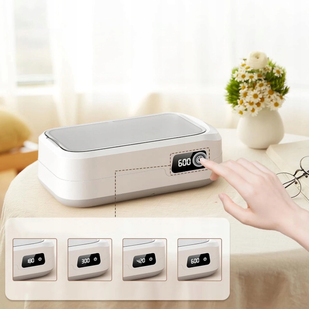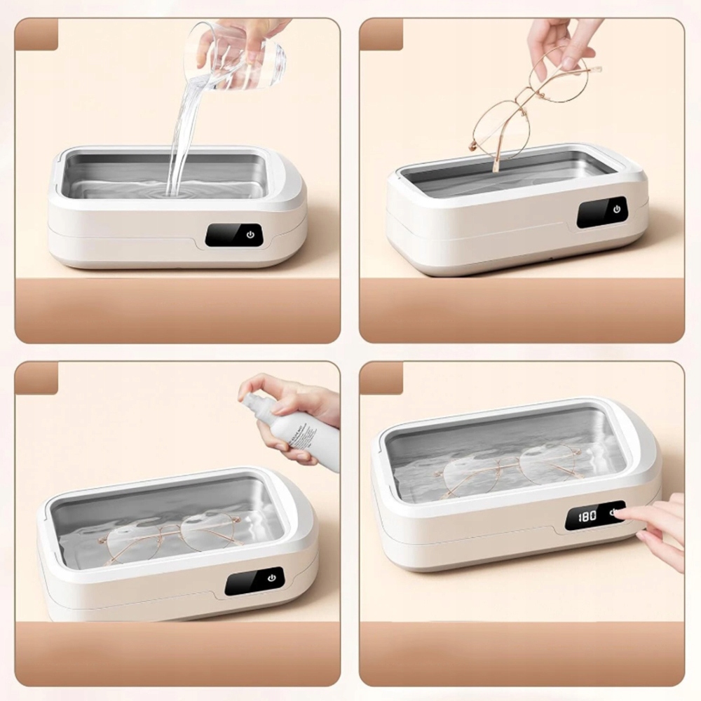 - Ультразвуковий очисник із надвисокою частотою 49 000 Гц підходить для чищення окулярів, зубних протезів, ювелірних виробів тощо. Він забезпечує ретельне та м’яке очищення на 360°. Створення мікробульбашок і висока потужність ефективно видаляють плями і сторонні тіла. Пристрій легко використовувати з водою та миючим засобом і не завдає шкоди. Це робить його ідеальним пристроєм для ультразвукового очищення для домашнього використання.