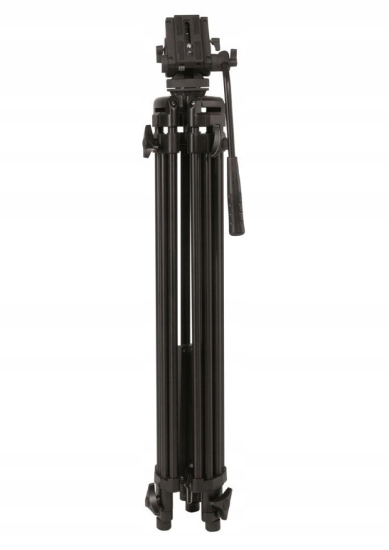 Професійний відеоштатив із надзвичайно міцною конструкцією для великих відеокамер, 2-стороння рідинна головка з довгою ручкою, розміри: у складеному вигляді 90 см / макс. зріст 198см, вага 4740г, макс. навантаження 7 кг, рівень, змінна тарілка, вкл. корпус, чорний.