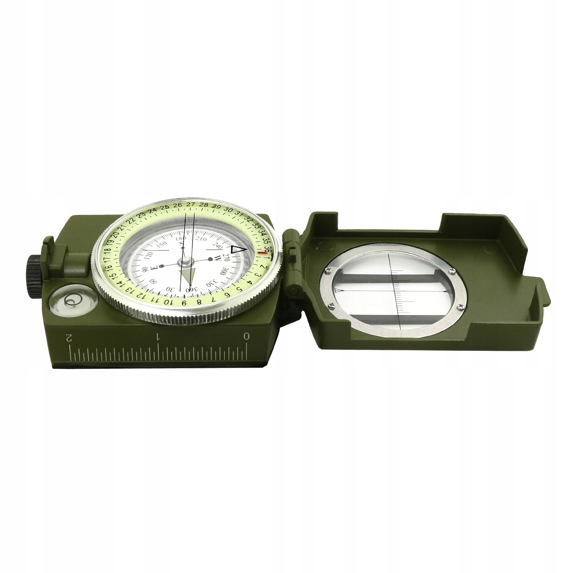- Точний покажчик напрямку: компас оснащено призматичним індикатором, який дозволяє точно зчитувати напрямок навіть у складних умовах місцевості.