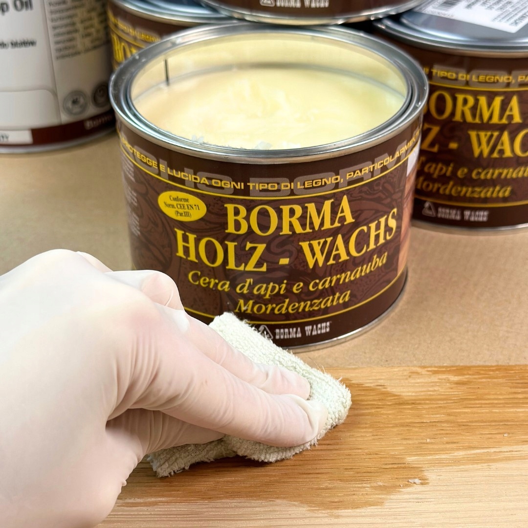 BORMA HOLZ-WACHS- це професійний продукт, що містить основні воски мінерального, тваринного та рослинного походження. Запобігає появі тріщин, здуття та вицвітання всіх типів дерев'яних поверхонь. Його захисні властивості підтримуються надзвичайно стійкими світлими пігментами, які підсилюють теплоту та колір деревини та ретушують будь-які дефекти.