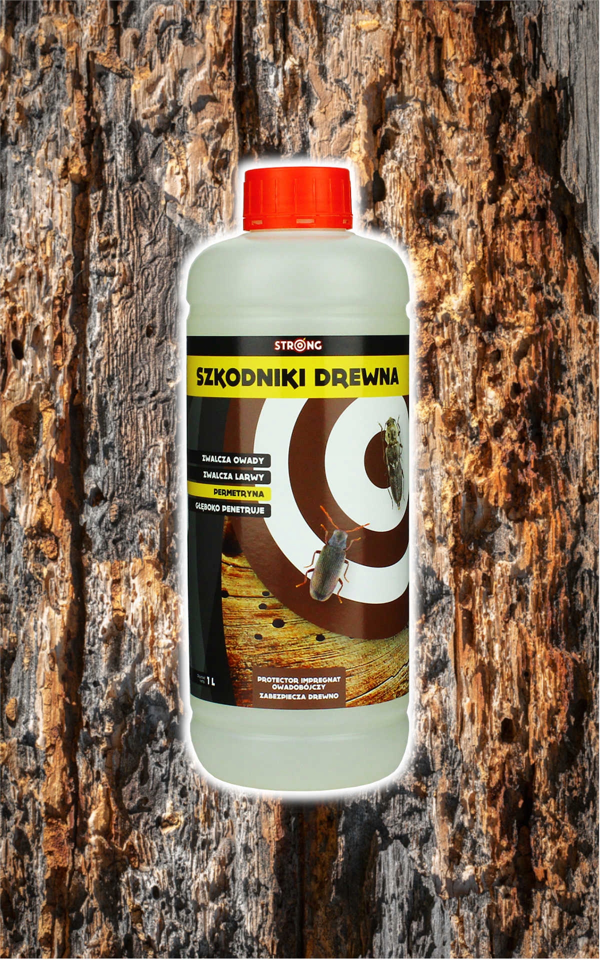Інсектицидне просочення СИЛЬНИЙ ДЛЯ ШКІДНИКІВ ДЕРЕВИНИ - це захисний засіб нового покоління для боротьби зі шкідниками деревини. Особливо ефективний проти листових кліщів (Anobium Punctatum), листових кліщів (Hylotrupes bajulus), пульпових кліщів (Lyctus brunneus), сріблястих кліщів (Sirex gigas), термітів, короїдів та інших.
