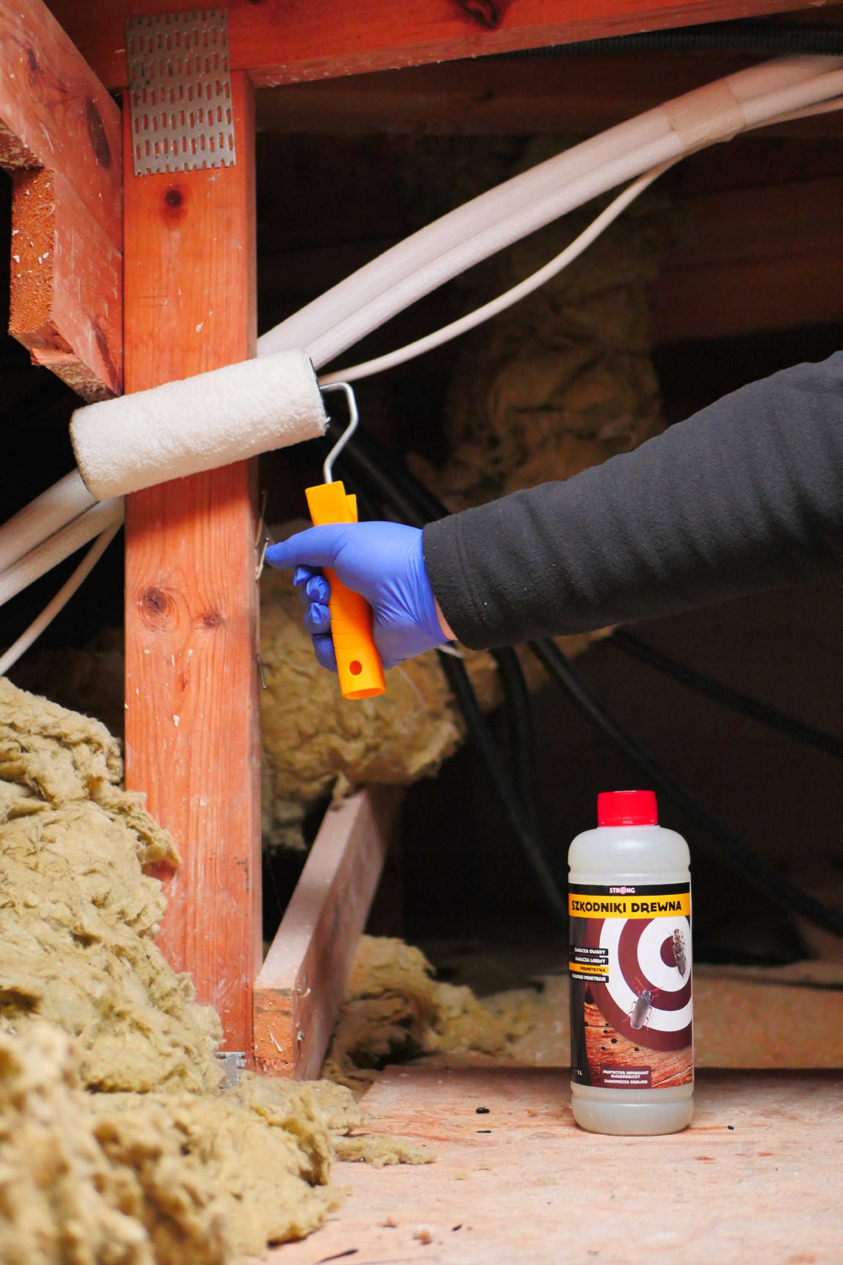 Для знищення комах використовуйте препарат СИЛЬНИЙ ДЛЯ ШКІДНИКІВ ДЕРЕВИНИ в кількості, яка відповідає способу застосування та очікуваній дії. Нанесіть на деревину, використовуючи принаймні фарбування пензлем або розпиленням дворазове, з інтервалом не менше 2 годин; метод купання цілих елементів шляхом занурення. Вологість деревини до захисту макс. 25%. Після просочення приправте деревину під покрівлю на розпірках мінімум 48 годин. Зберігайте просочену деревину подалі від людей і тварин, поки вона не висохне. Поверхні, на які було нанесено продукт, можна наносити через 24 години. Приміщення, в яких деревина оброблена препаратом, можна вводити в експлуатацію після інтенсивного провітрювання.
