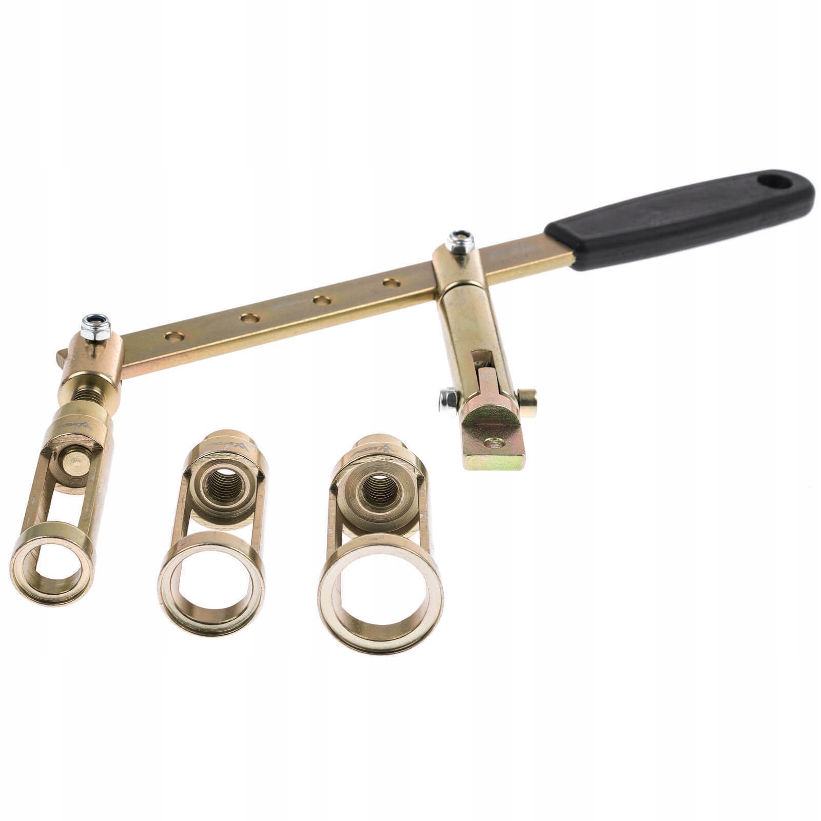 Опис інструменту: Важіль зі змінними адаптерами для стиснення пружин клапана. У комплекті три перехідника різного діаметру. Пристрій використовується в двигунах 8В, 12В та 16В.