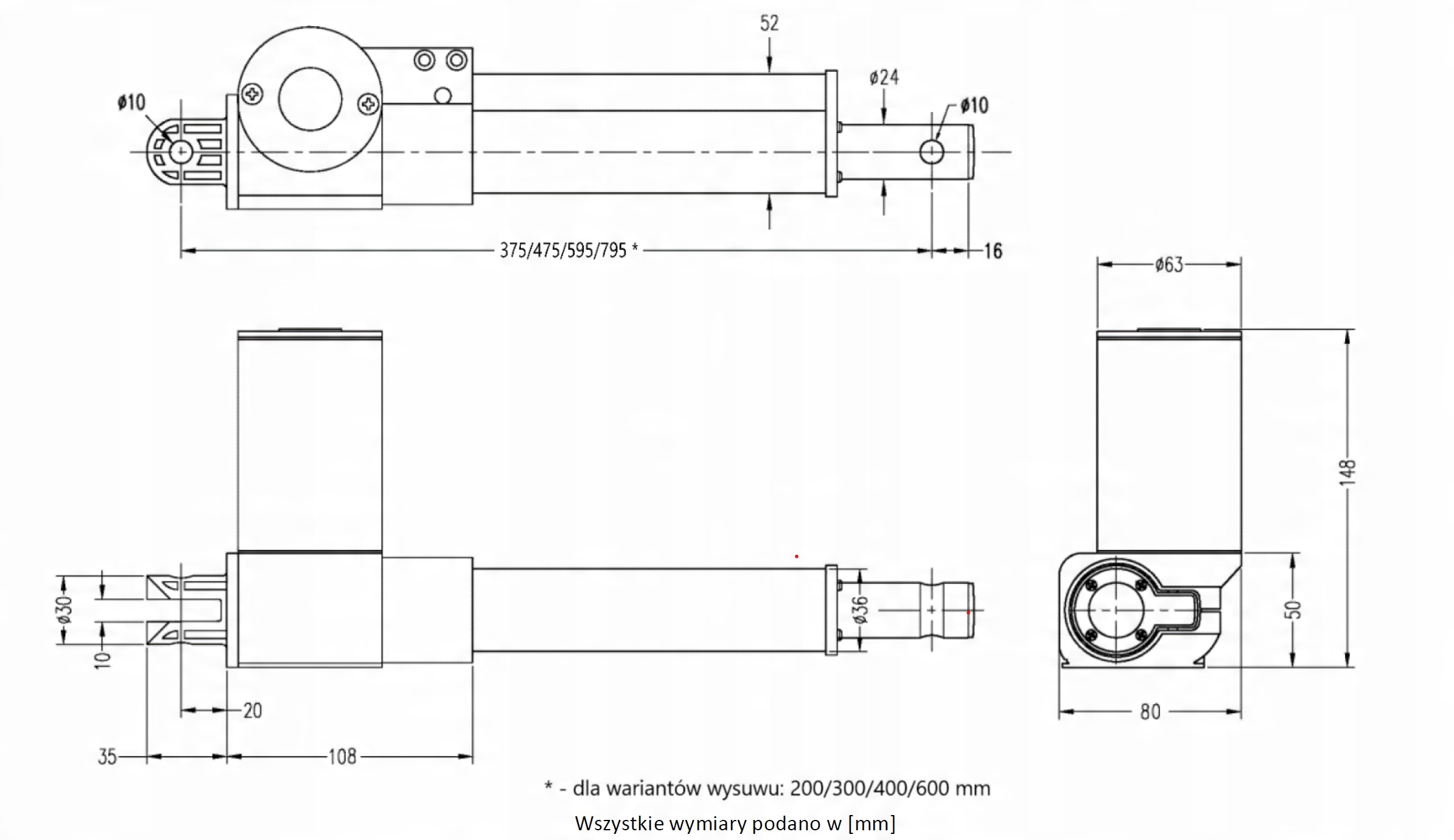 PROFESJONALNY SIŁOWNIK ELEKTRYCZNY 400MM 20MM/S - IDEALNY W ROBOCIE