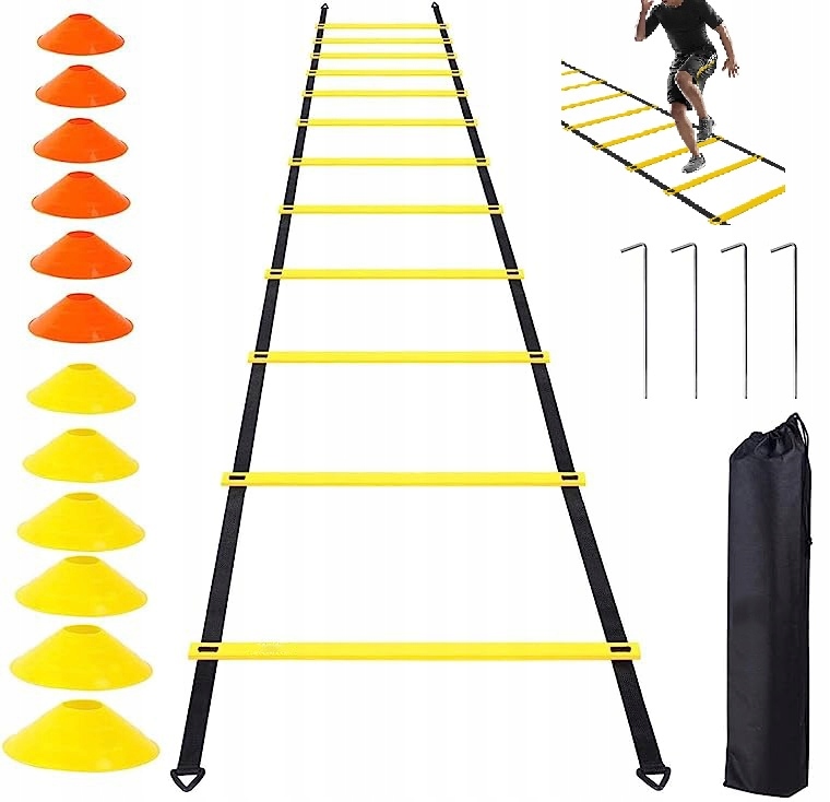 PROFESJONALNY ZESTAW PIŁKARSKI TECHNIKA SZYBKOŚĆ DRABINKA + 12 PACHOŁKI