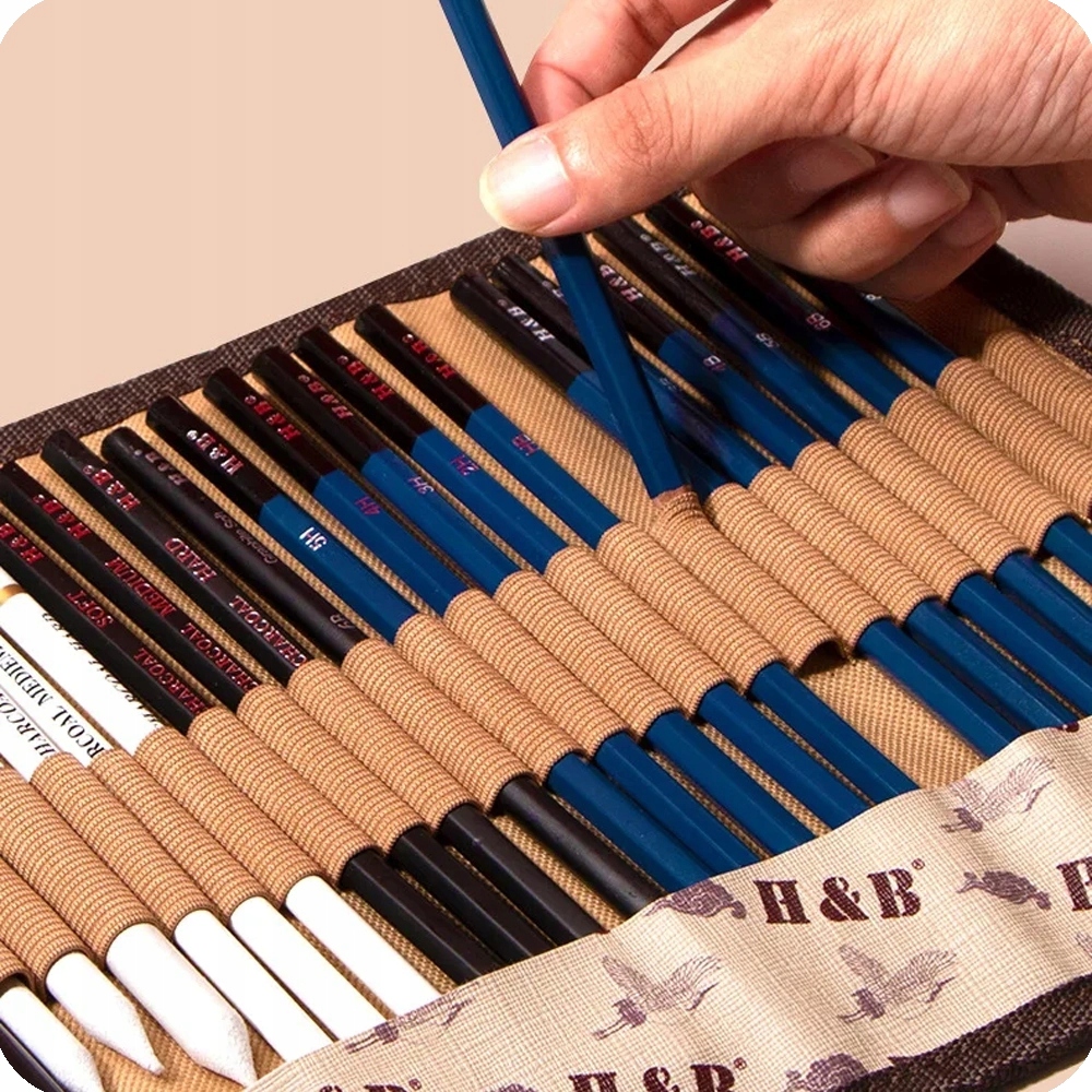 ✍️ Зручні аксесуари, такі як подовжувач олівця, ластик, точилка, ніж і зручний футляр, дозволяють легко почати малювати відразу.