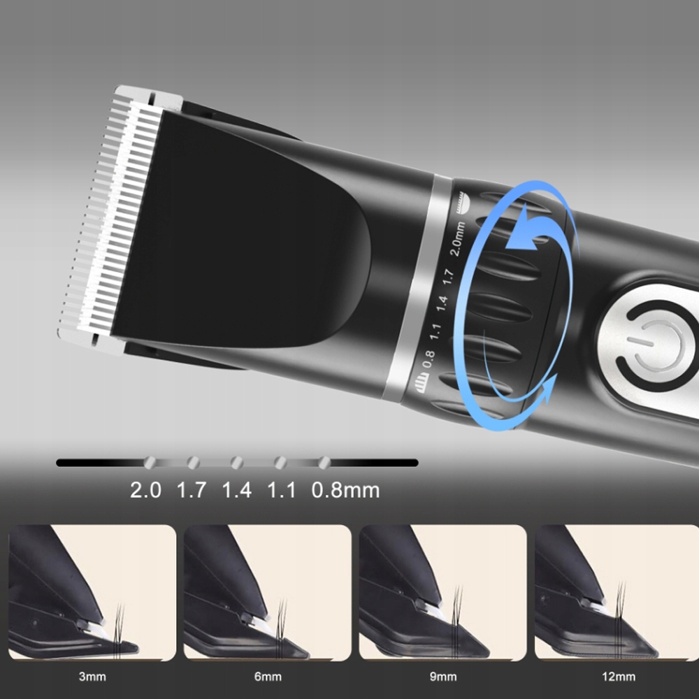 - ОСНАЩЕНИЙ 4 ДОВЖИНАМИ (3/6/9/12 ММ) ГРЕБІНІВ ТА РУЧКИ ТОЧНЕ РЕГУЛЮВАННЯ ЗАБЕЗПЕЧУЄТЬСЯ П'ЯТЬЮ ДОВЖИНАМИ (0,8-2,0 ММ), ЯКІ МОЖНА ТОЧНО РЕГУЛЮВАТИСЯ ДО ПОТРЕБ ДОВЖИНИ ВЕРСЯ ТВАРИНИ.
