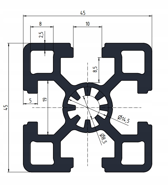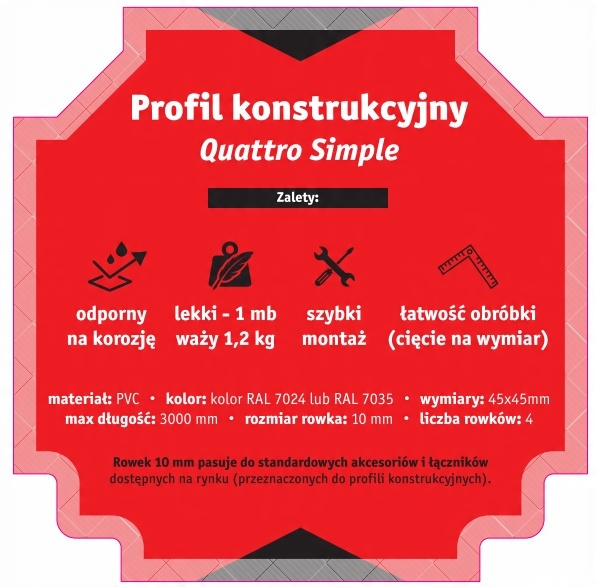 Профіль конструкції Quattro Simple 45 x 45 x 1000 mm/Grey ral 7035