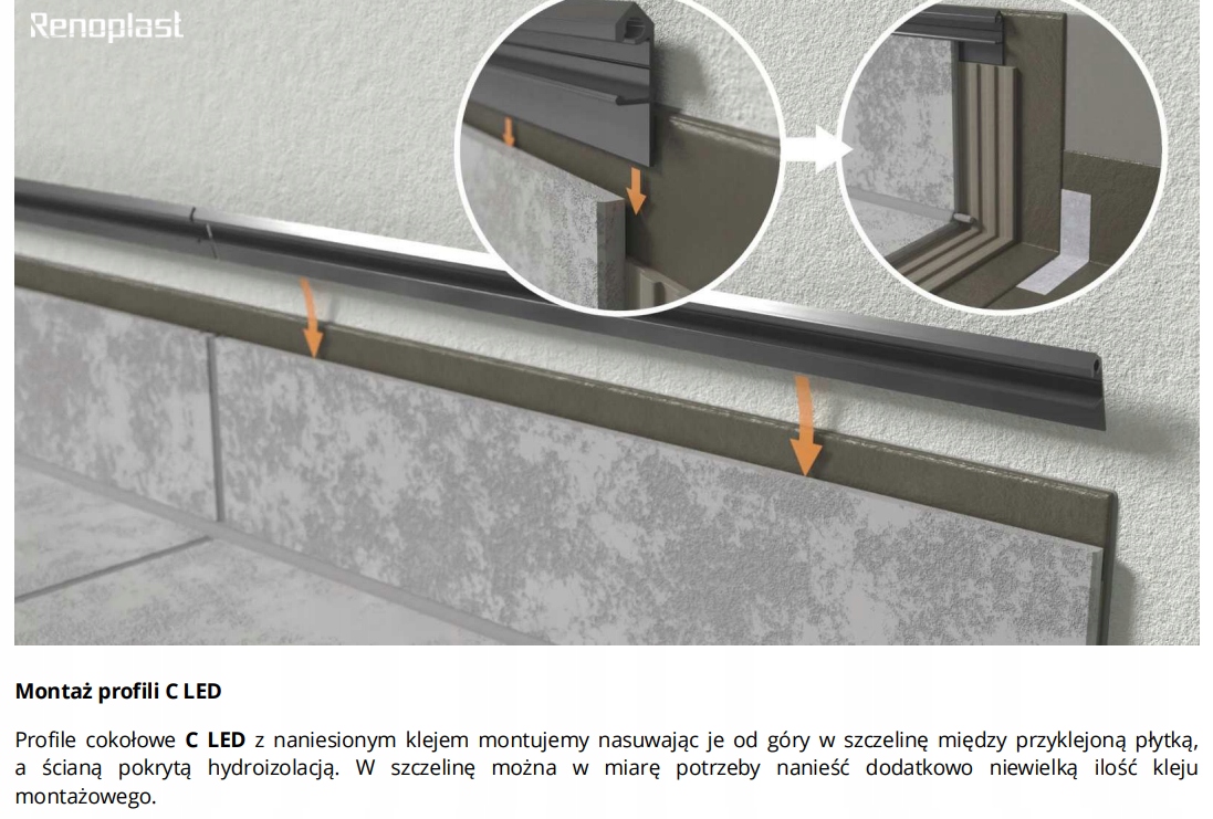 Світлодіодний плінтусний профіль Renoplast призначений для традиційних клеєних та смоляних підлог типу «кам’яний килим».