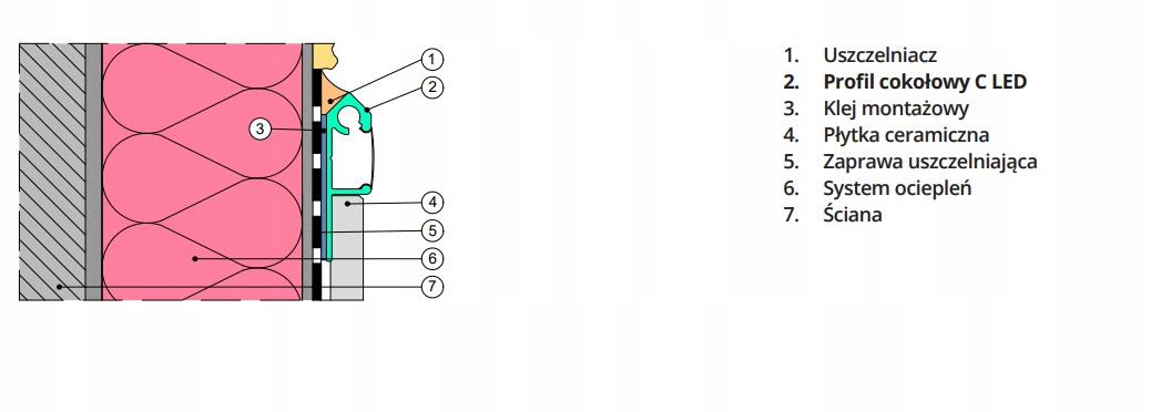 Для профілю цоколя ми можемо використовувати торцеві заглушки (заглушки), що продаються в комплекті (праві та ліві), при їх використанні ми не використовуємо з’єднувальні штирі.