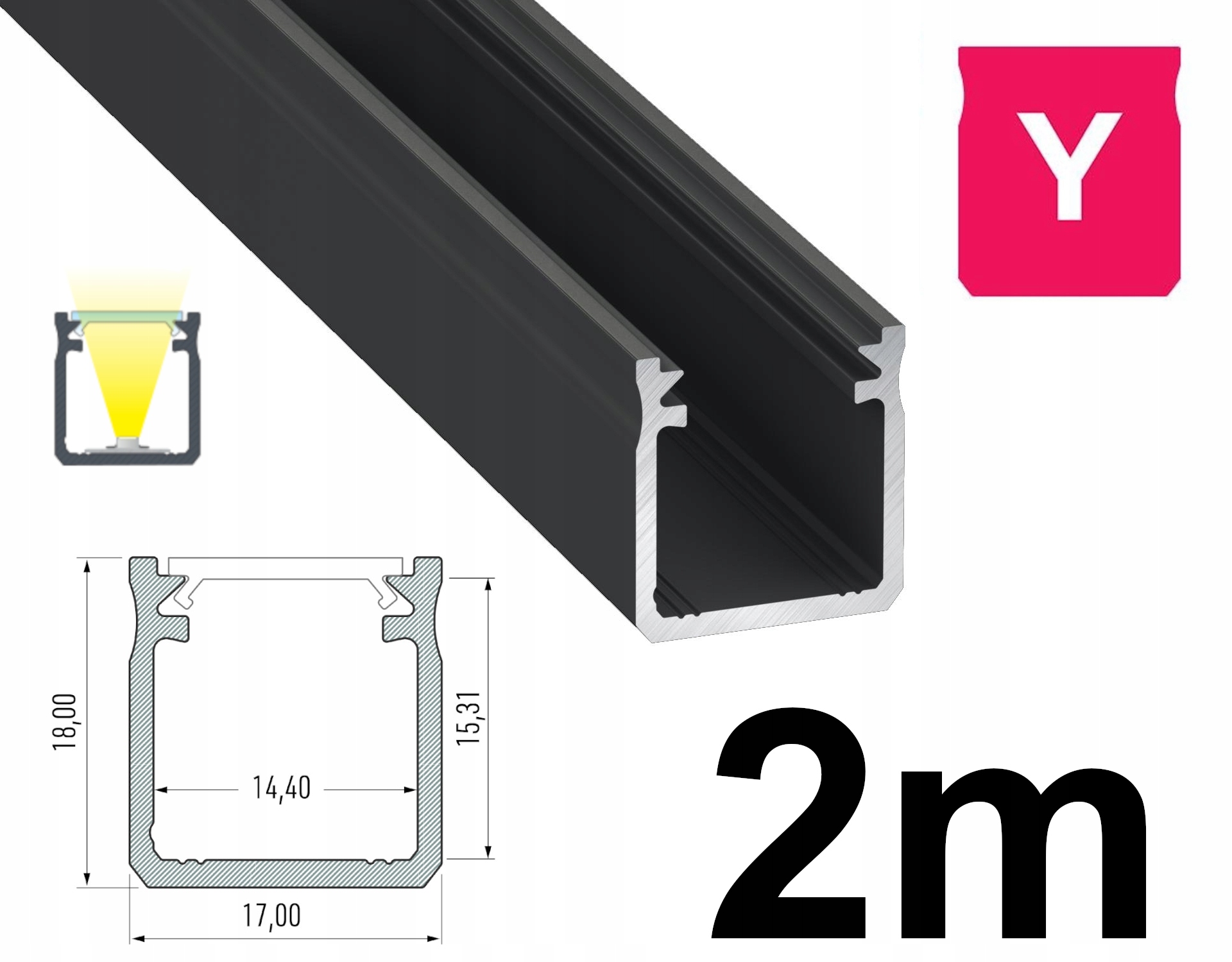ПОВЕРХНИЙ АЛЮМІНІЄВИЙ ПРОФІЛЬ ДЛЯ СВІТЛОДІОДНИХ СМУЖОК, ТИП Y 2M, ЧОРНИЙ АНОДИРОВАНИЙ, ВИСОТА 18 мм