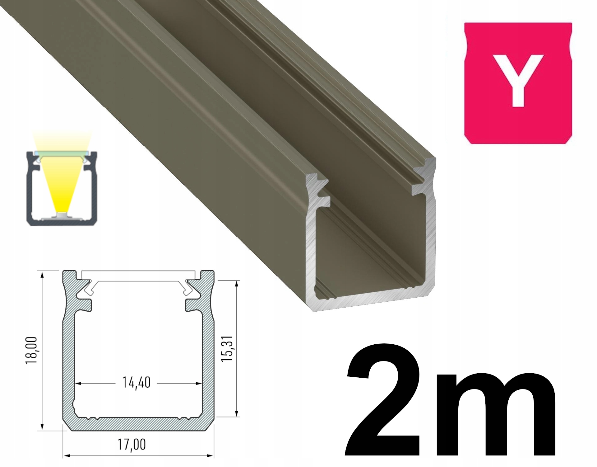 Профіль для світлодіодної смуги алюмінієвого типу y 2m inox коричнева анодована висота 18 мм