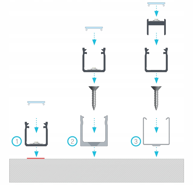 Багато людей, які вже встановили світлодіодну смужку, знають, наскільки важко приклеїти навіть дуже гарну світлодіодну смугу на поверхню, таку як дерево або штукатурка. Алюмінієвий профіль також тут стає в нагоді, оскільки він є ідеальною основою для світлодіодної смуги. The profile only needs to be degreased and you can easily glue the LED tape to it.