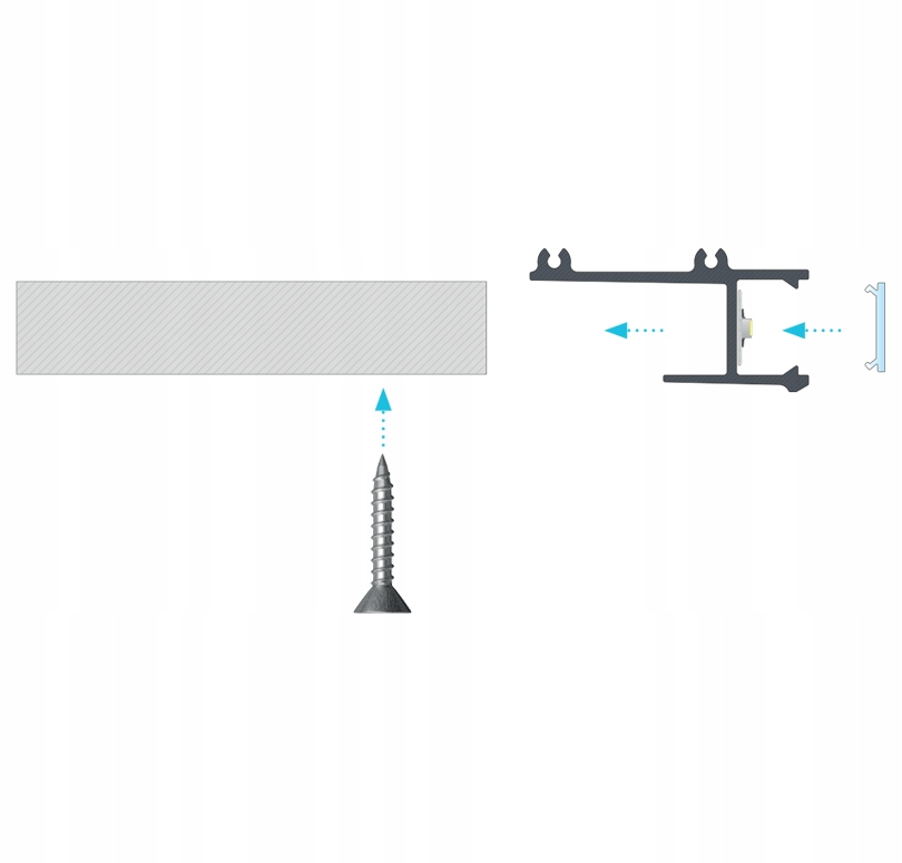 екран монтуєтьсянатисканням з передньої (верхньої) частини профілю або вставляється